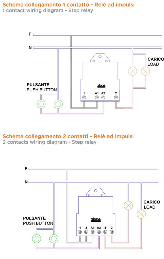 Relè ad impulsi con binari posteriori per l’alloggiamento del condensatore